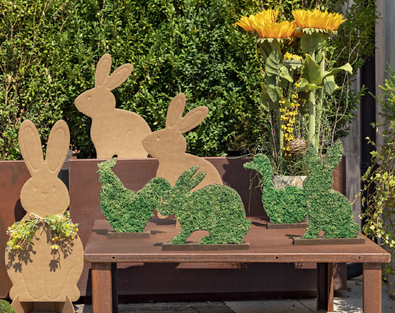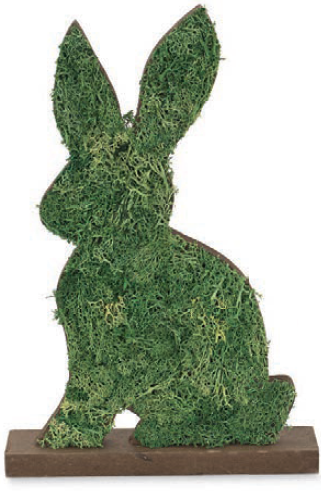 Questa decorazione autoportante celebra il risveglio primaverile attraverso un accostamento materico di grande impatto visivo e tattile. La silhouette iconica di un coniglio, intagliata con precisione in una solida base di legno, è interamente rivestita da uno strato denso di muschio verde vibrante. È un oggetto d’arredo capace di portare la freschezza e l'autenticità di un giardino incantato direttamente all’interno degli spazi domestici, perfetto per chi ama uno stile organico e senza tempo.